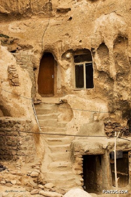 ?ây là ngôi làng duy nh?t, v?i nh?ng ngôi nhà ???c xây trong hang có d?ng hình nón. Nh?ng hang ??ng hình nón này ???c hình thành t? tro núi l?a Sahand nén c?ng nh? ?á và ??nh hình l?i qua hàng tr?m n?m. Tho?t nhìn ngôi làng cho ta c?m giác gi?ng nh? lãnh ??a kh?ng l? c?a loài m?i.